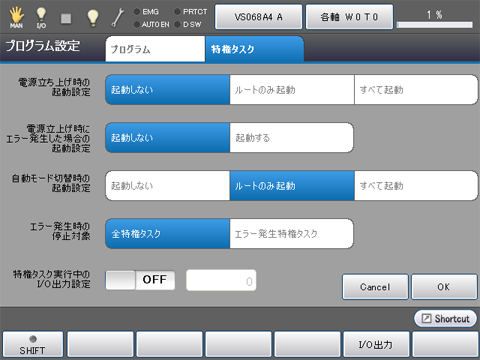 操作経路:[F1 プログラム] - [F6 補助機能] - [F1 プログラム設定] - [特権タスク タブ]
