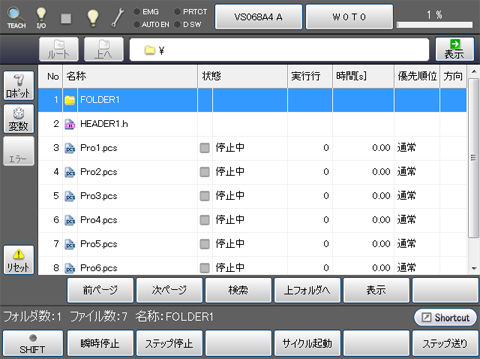 ティーチチェックモードで[F1 プログラム]を押すと、次のような[プログラム一覧]ウィンドウが表示されます。
