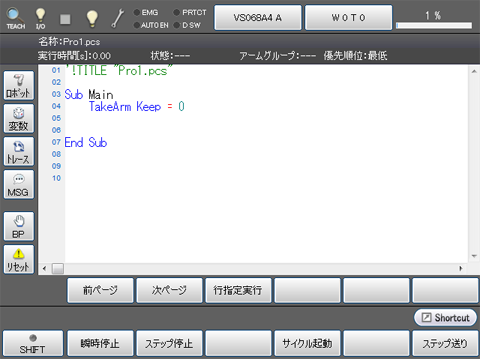 | [F2 ステップ停止] | 実行中のプログラムをステップ停止します。 |