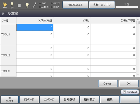 | [F2 次ページ] | 現在表示されているツール座標の直後のページに移動します。 |