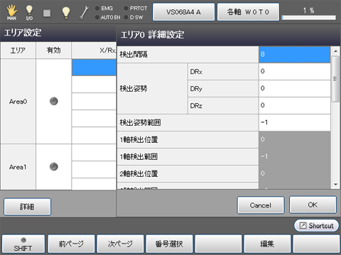 操作経路:[F2 アーム] - [F6 補助機能] - [F5 エリア] - [F7 詳細]