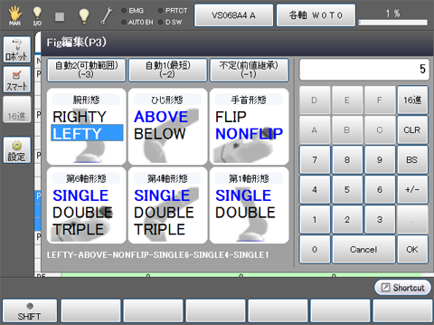 T型、P型の各変数において、ロボットの動作形態(Fig)を設定することができます。