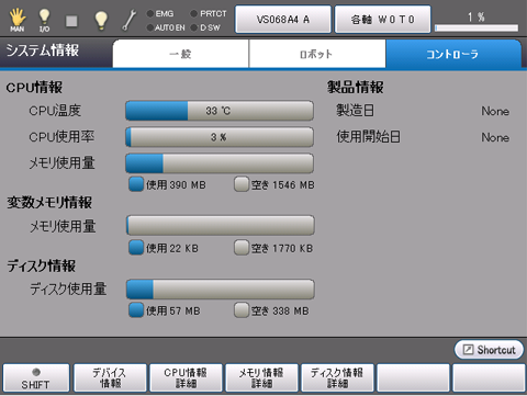 操作経路:[F6 設定] - [F2 システム情報] - [コントローラ タブ]