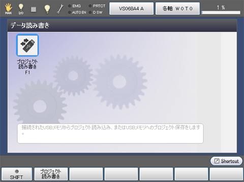 | [F1 プロジェクト読み書き] | USBからプロジェクトの読込み、またはUSBへプロジェクトの書込みを行います。 |