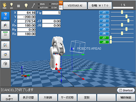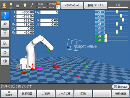 | ワールド座標 | ユーザ指定の原点を基準とする座標系で位置を指定。エリア、ワーク等もすべてワールド座標基準(ツールを除く)