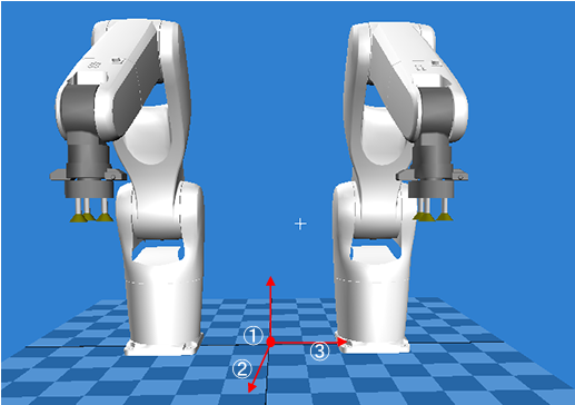 協調機能では、最初に、全てのロボットに対し、ワールド座標系から見たベース位置(ベース座標)を指定しておく必要があります。