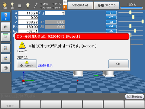 エラー表示については、ティーチングペンダント操作ガイドの「エラー表示」を参照してください。