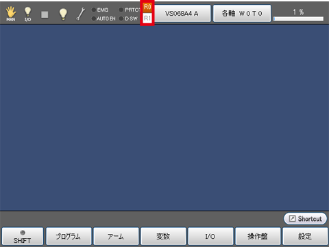 画面の上に協調用ロボット名が表示されていることを確認します。