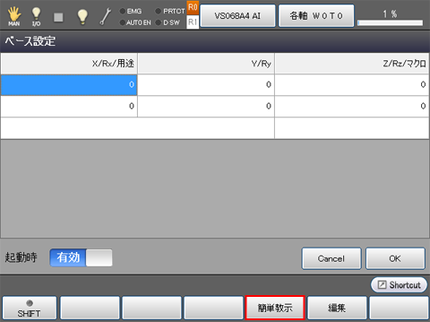 その後、「ベース設定」画面の[F4 簡単教示]を押します。