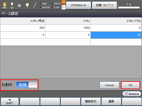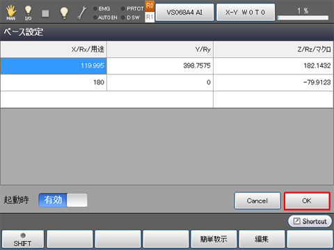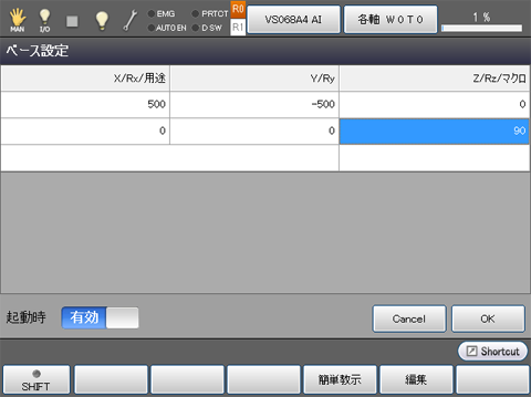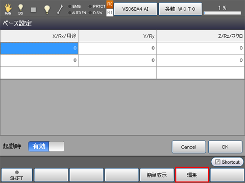 直接入力で設定する方法のSTEP1~3を実施し、Robot0のベース設定画面を開きます。