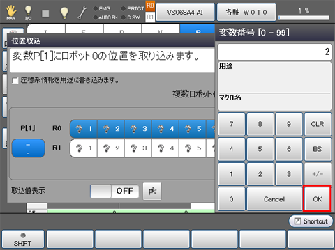 テンキーのデフォルトの変数番号は、リーダロボットの変数番号の次の番号もしくは前の番号になります。