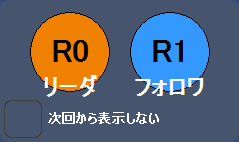 青色表示はロボットがフォロワであり、モータがONの状態であることを示します。 | ||