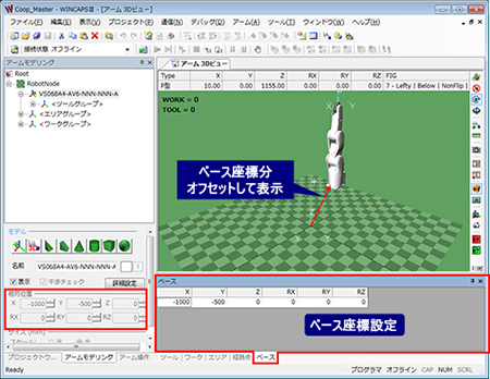 操作経路:[メニュー] - [表示] - [アーム座標系] - [ベース]