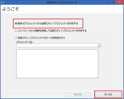 「既存プロジェクトから協調用ロボットプロジェクトを作成する」を選択します。