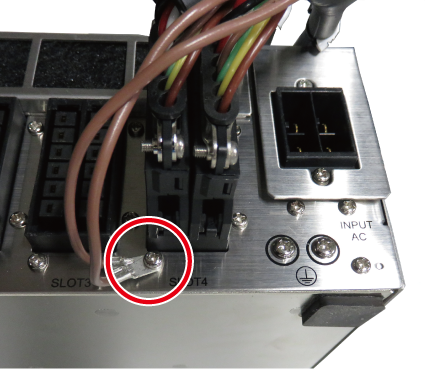 図のように、本体間ケーブルのFG線を、コントローラに接続してください。
