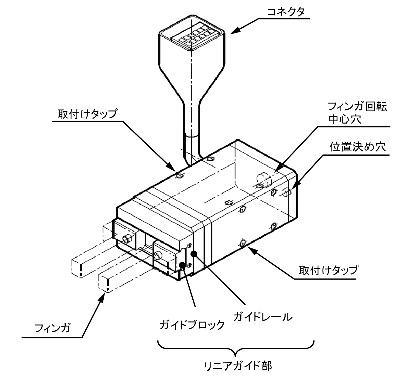 電動ハンドはロボットのフランジ部に装着して、ワークの把持を行うツールです。2本のフィンガーをプログラムの指令により、開いたり閉じたりして、ワークの把持・解放を行います。