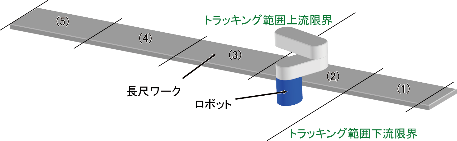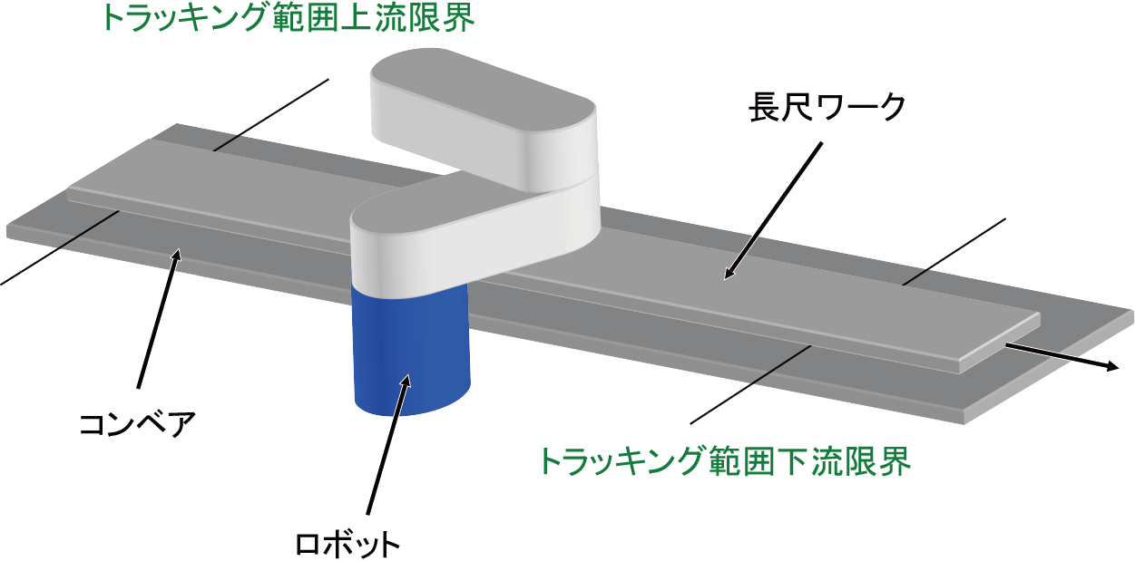トラッキング範囲を超える長さのワークが対象になります。
