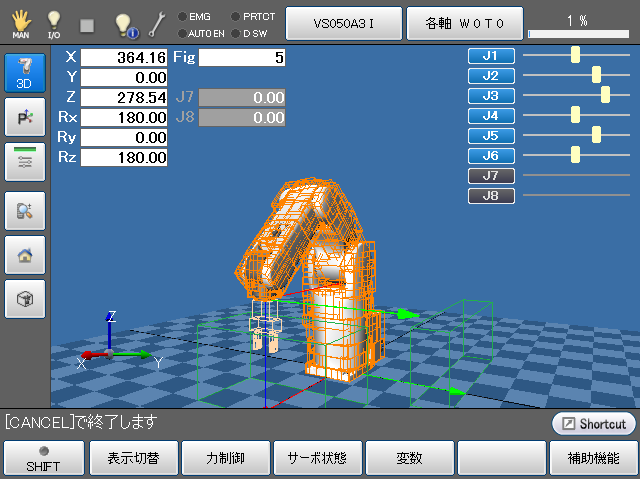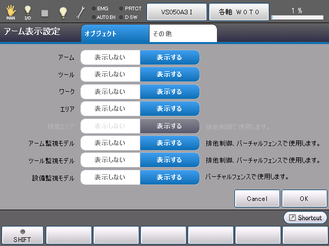 操作経路: 基本画面 - [F2アーム] - [F6補助機能] - [F7表示設定]