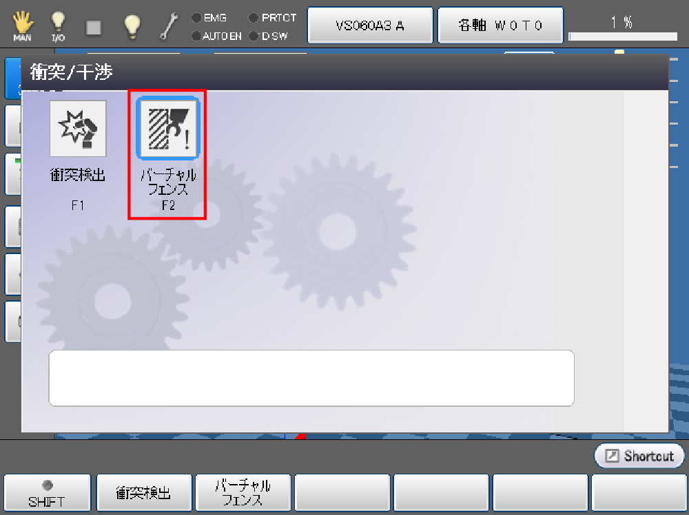 操作経路:基本画面 - [F2 アーム] - [F6 補助機能] - [F2 衝突/干渉]
