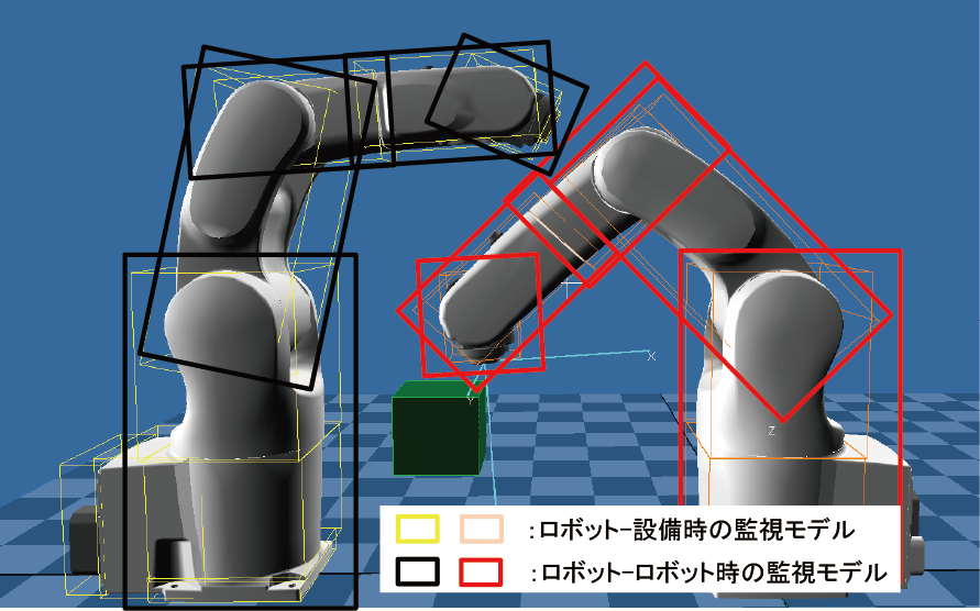 協調機能で複数のロボットを動作させる場合、初期設定では、安全のため、監視モデルのサイズを大きくして監視を行っています。
