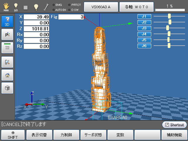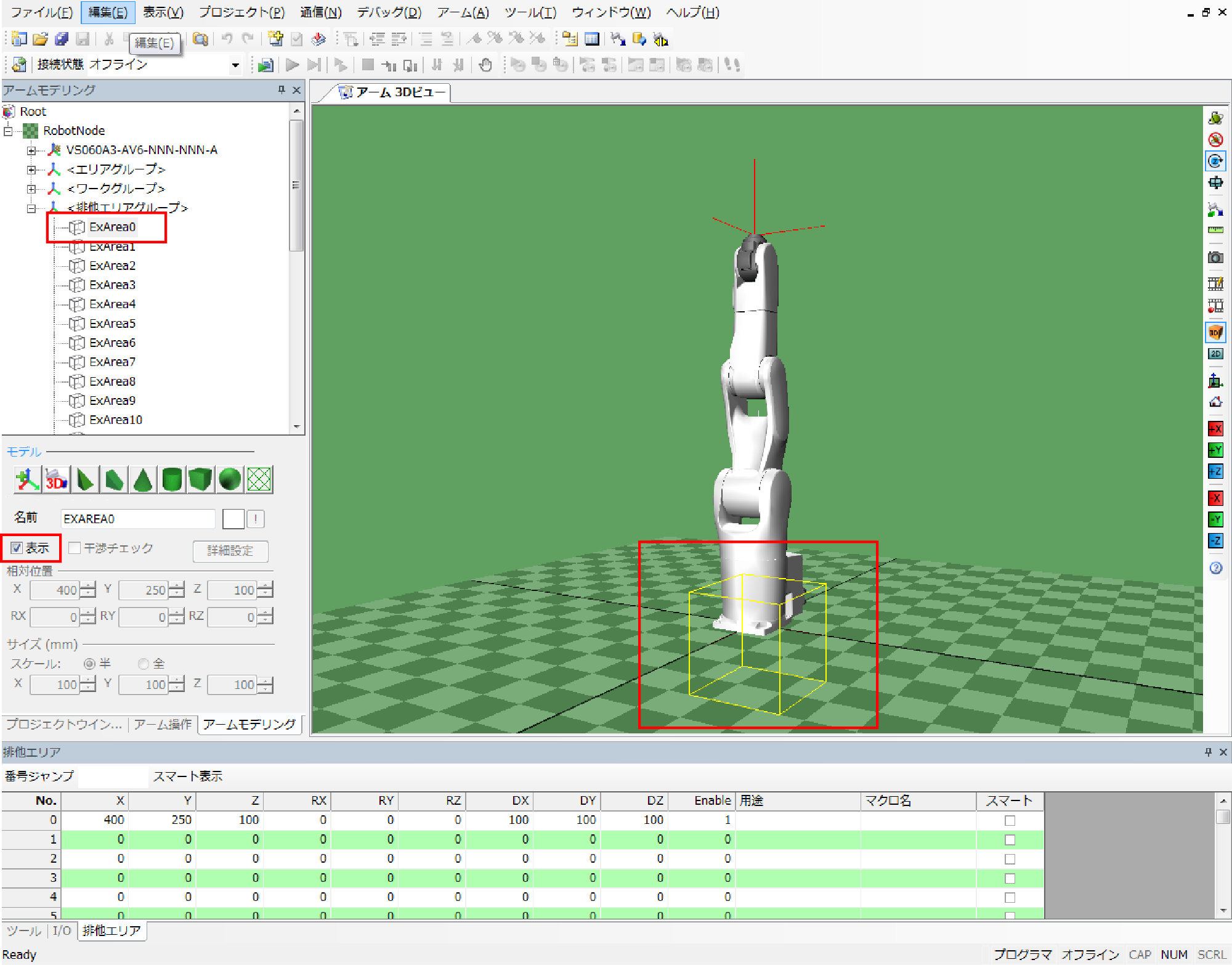 操作経路:メニュー[表示(V)] – [アーム座標系] – [排他エリア]
