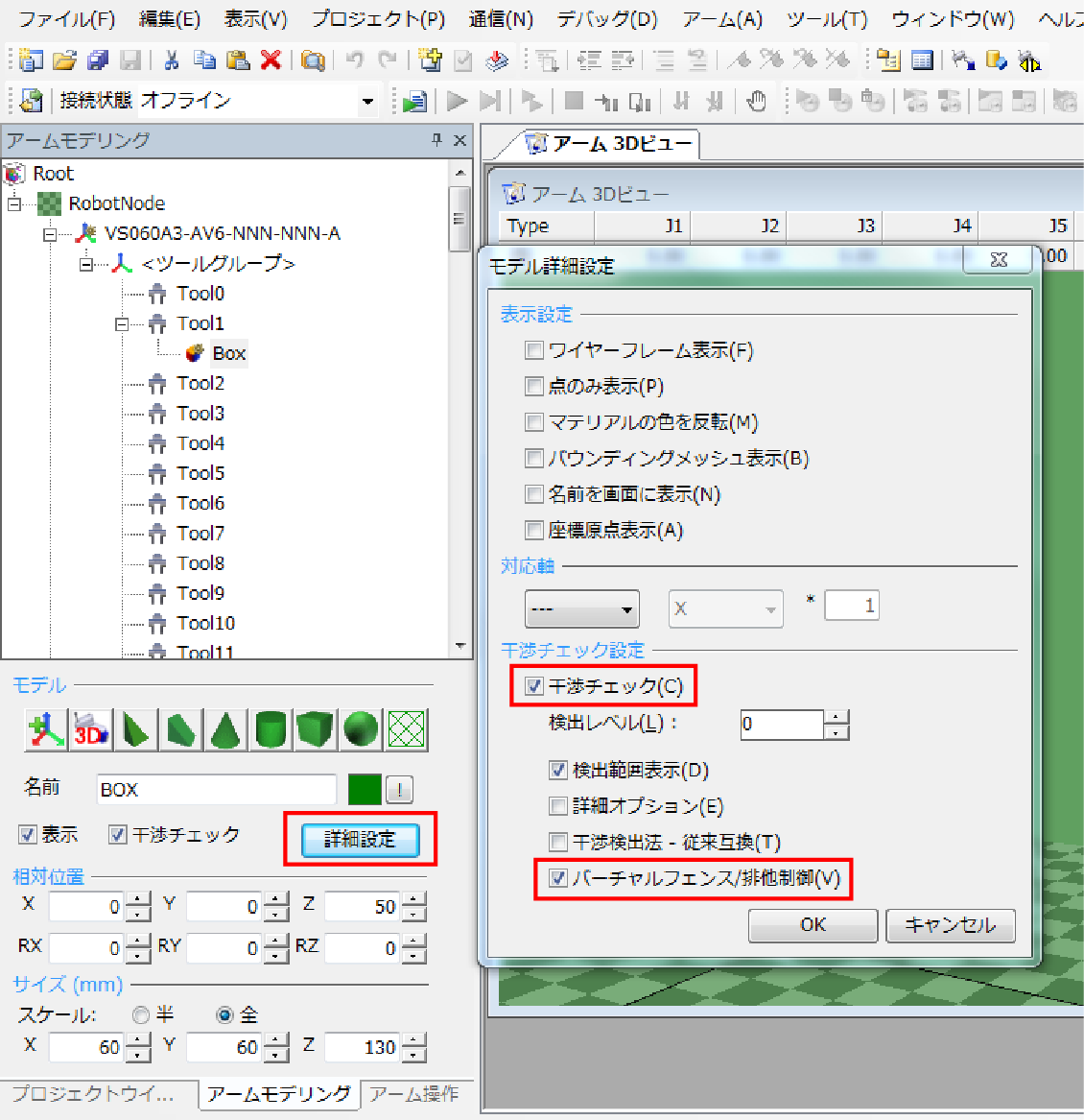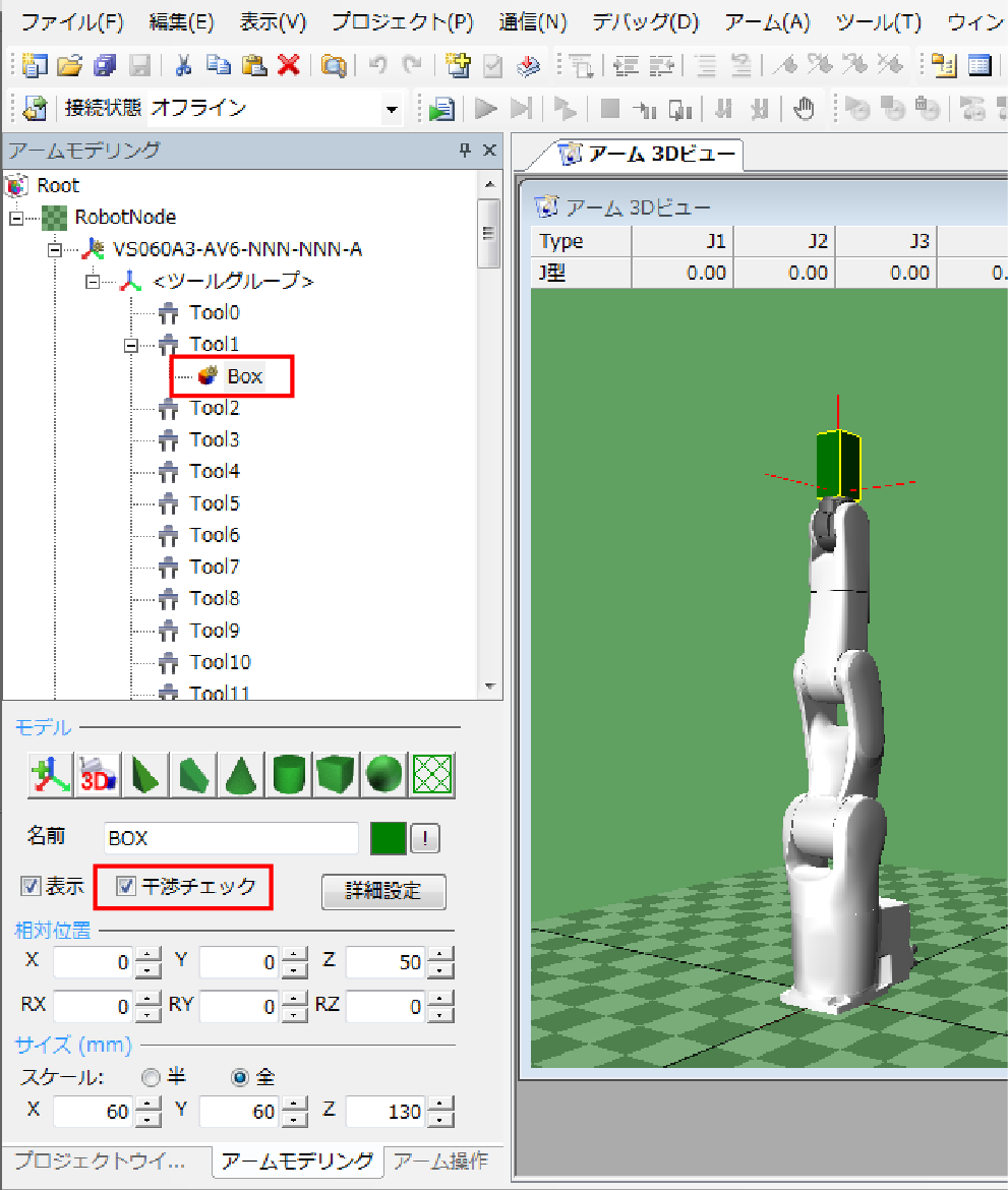 ロボットは常に干渉チェックが有効になっています。