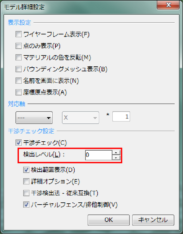 対象のオブジェクトを選択し、「干渉チェック」を有効にします。