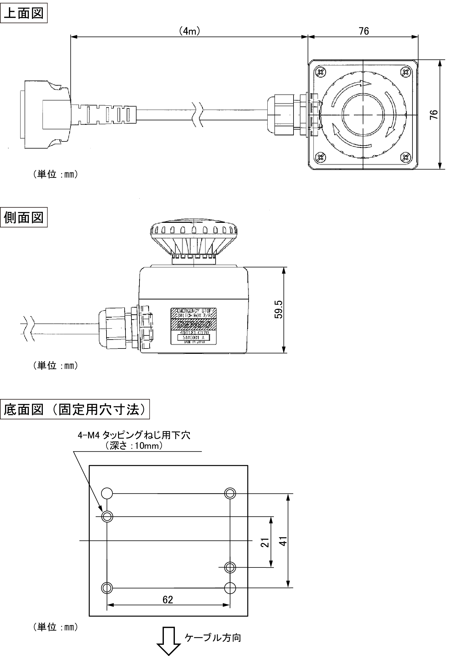 非常停止スイッチボックスの外形寸法を下図に示します。