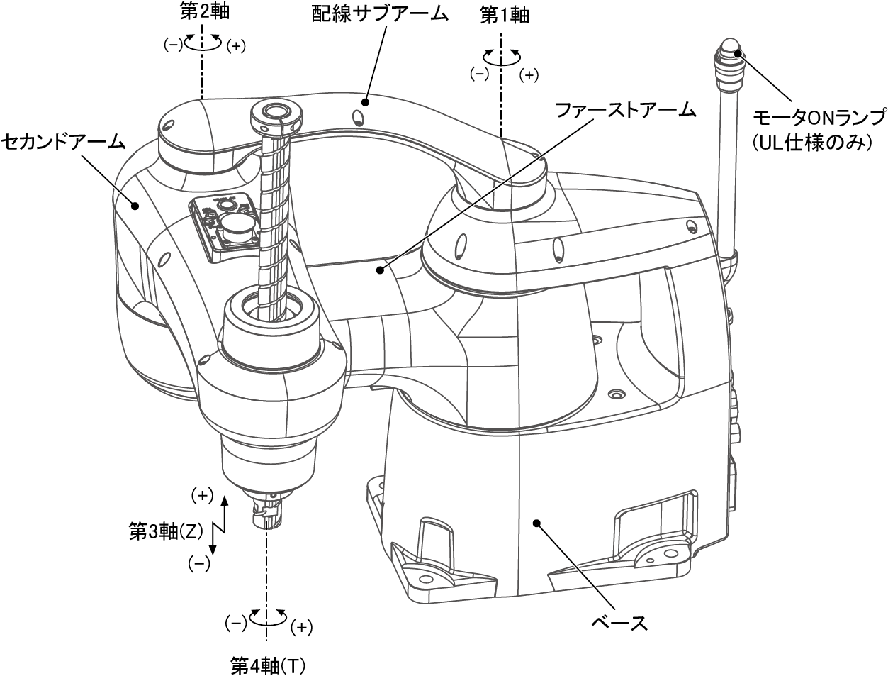 - UL仕様には、ベース背面にモータONランプが装着されています。