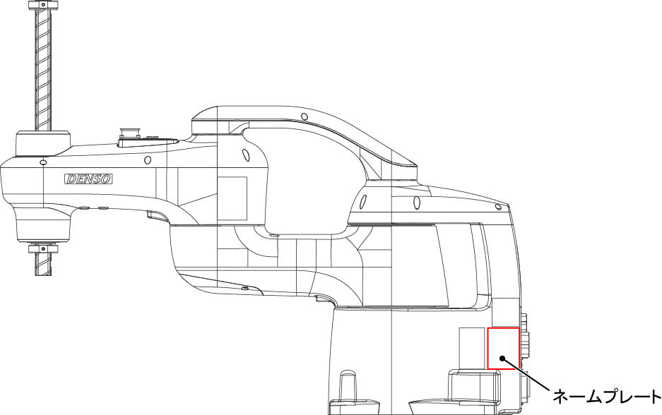 ロボット本体のネームプレートはベース部に貼ってあります。ネームプレートにはロボット固有のデータなど、下記内容が記載されています。
