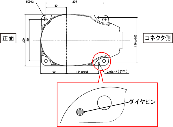 | 位置決めピン用穴(2箇所) | ダイヤピン用 | φ4H7、深さ10mm以上 |