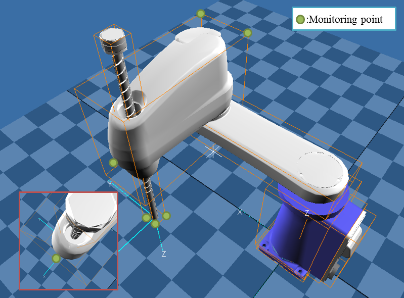 ロボット上の監視点の速度が、指定速度以下であるかを監視する機能です。