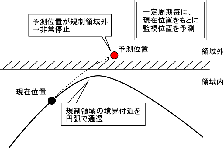- 規制領域の境界付近を通過するときの速度を下げる。