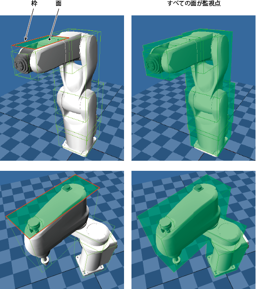 ロボット上の監視点が、指定した範囲を超えていないかを監視する機能です。