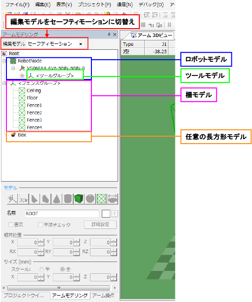 | ロボットモデル | Robot Node以下のオブジェクト。(ツールグループを除く) |