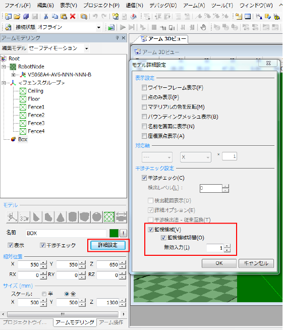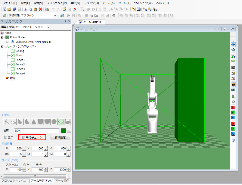 フェンスモデルは、常に干渉チェックが有効です。