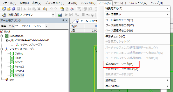 操作経路:メニュー[アーム] - [監視領域データ出力(M)]