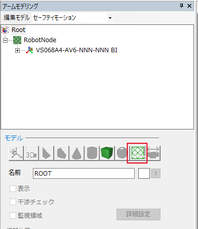「詳細設定」から「モデル詳細設定」を開き、「干渉チェック設定」を設定します。