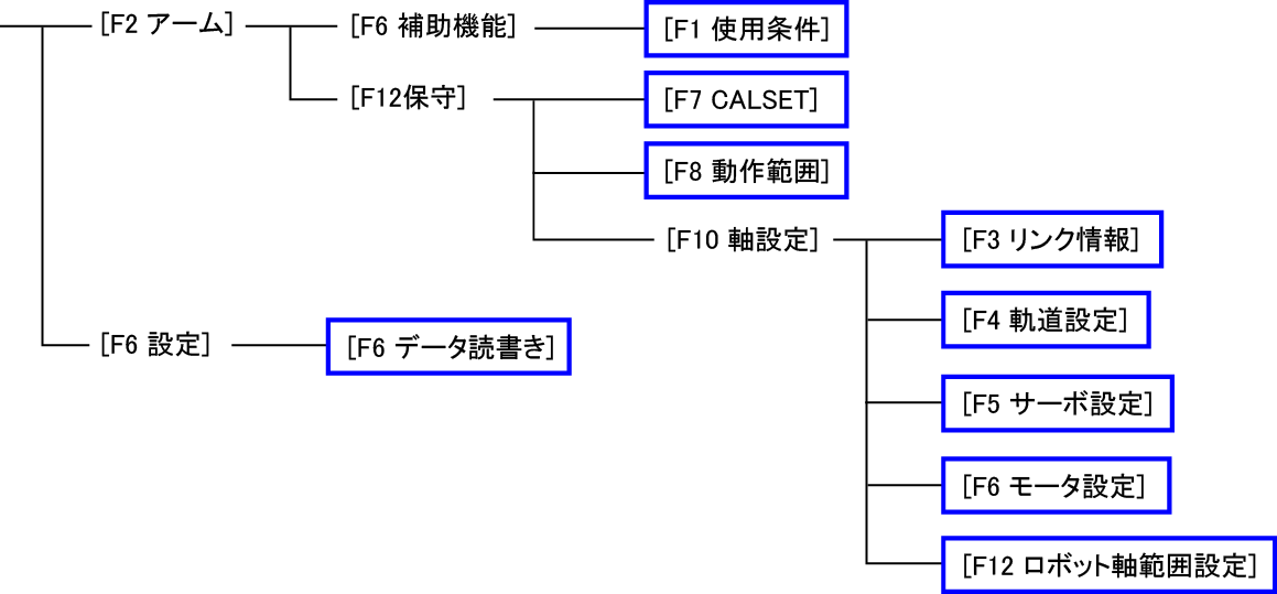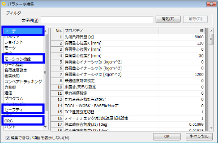 ロボットに関するパラメータとは、具体的に下記の操作で変更するパラメータです。下記操作を行った場合は必ずセーフティモーション用の格納場所に変更を反映してください。