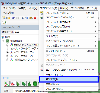 軸設定表 操作経路 : [プロジェクト(P)] - [軸設定表(J)]