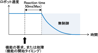 ロボットはフリーラン動作を開始します。ロボットが停止するための時間と距離は、システムの力学および運動エネルギーに依存します。