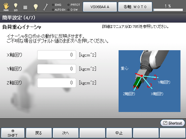 「負荷重心イナーシャ」を設定します。