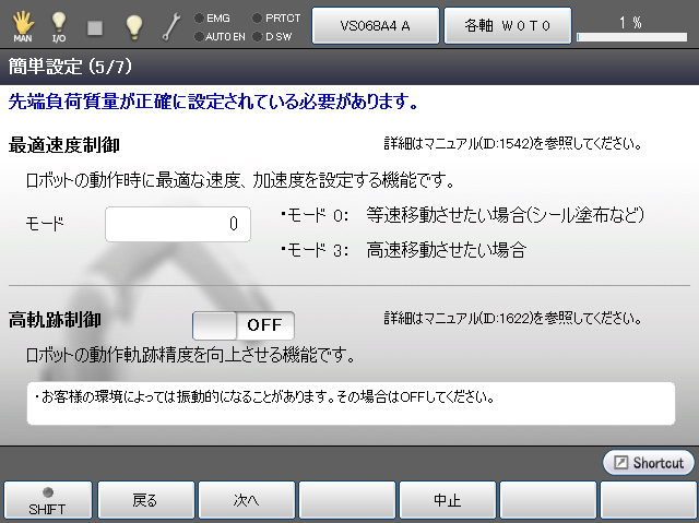 「最適速度制御」と「高軌跡制御」を設定します。