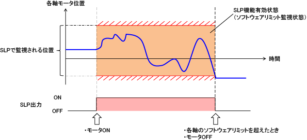 ・各軸のソフトウェアリミットを超えたときにOFFします。