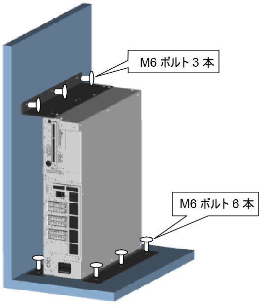 M6のボルトで設備の床6箇所、壁に3箇所固定します。