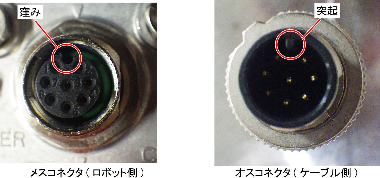 突起と窪みの位置を合わせて、オスコネクタをメスコネクタに奥まで(ねじ山が3山程度残るまで)挿入します。