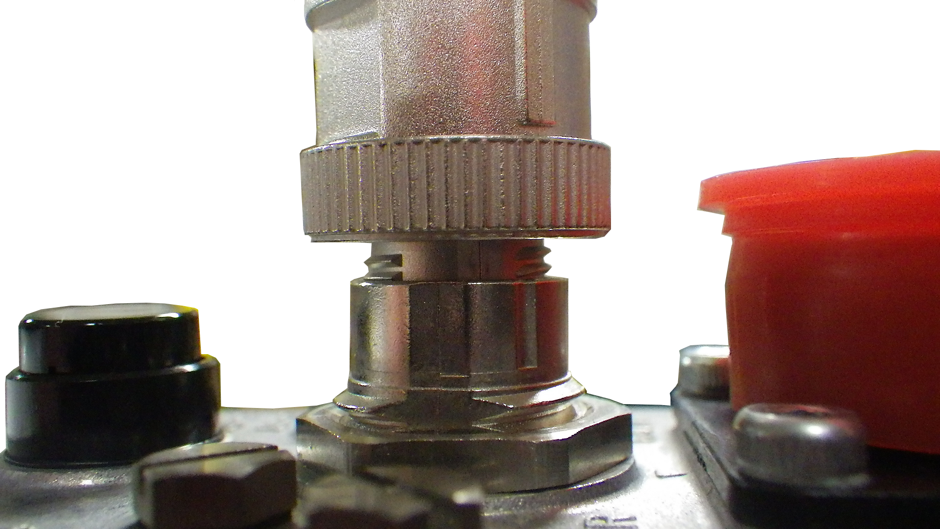 オスコネクタ(ケーブル側コネクタ)を180度(1/2回転)時計回りに回して完了です。ねじ山が2山程度残りますが、問題ありません。