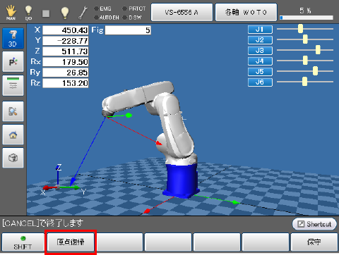 アーム画面で[F7 原点復帰]を押します。