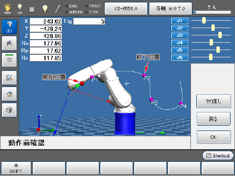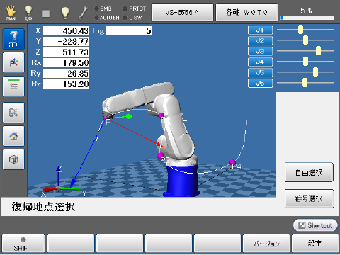 | 自由選択 | 原点番号から目標位置を指定します。 軌道上の水色の丸が復帰位置になります。 |