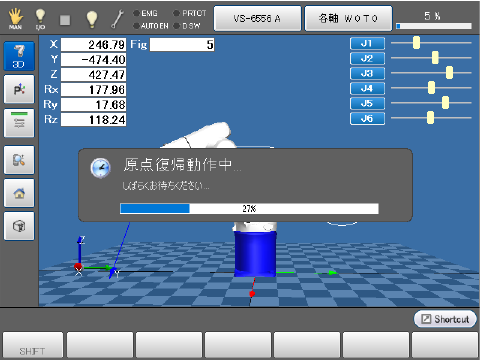 デッドマンスイッチを正しく押しながら、[OK]ボタンを押し続けると原点復帰動作が実行されます。